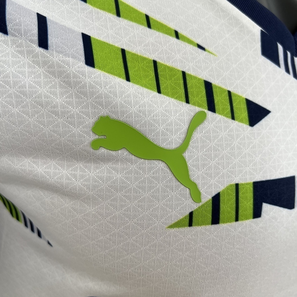 Camisa Manchester City Edição Especial 23/24 - Jogador Puma Masculina - Branca com detalhes em azul e verde
