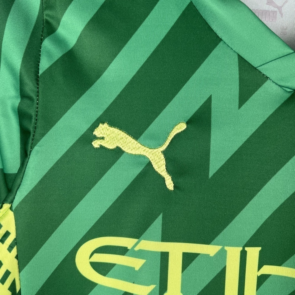 Kit Infantil Manchester City Goleiro Puma 23/24 - Verde com detalhes em amarelo